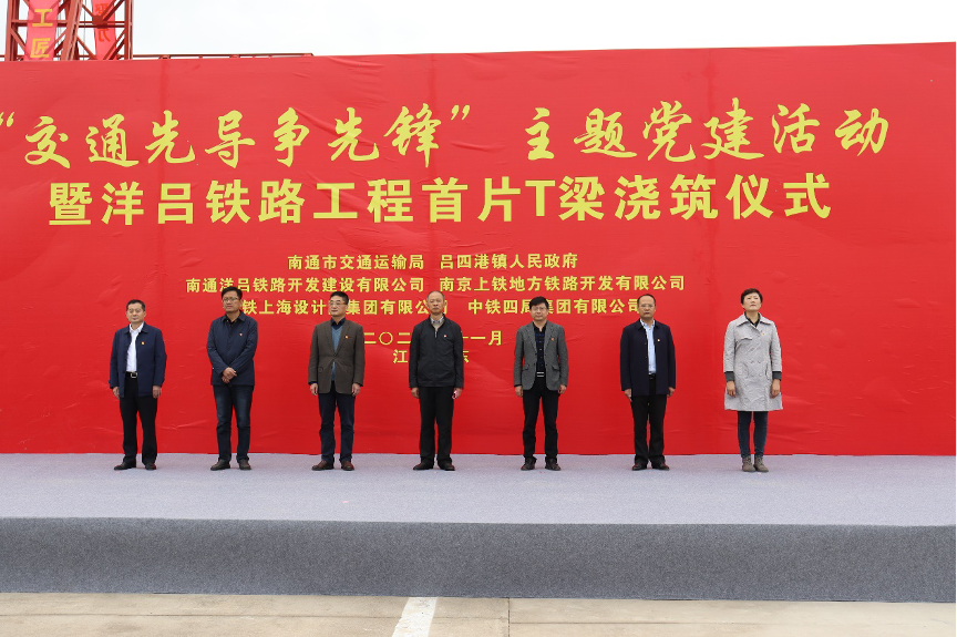 南通市交通運輸局黨委委員、鐵路辦主任助理張志忠、啟東市交通局副局長黃東健、呂四港鎮(zhèn)人民政府副鎮(zhèn)長盧華、南京上鐵地方鐵路開發(fā)有限公司副總經理徐俊,中鐵四局和洋呂鐵路公司相關人員參加了活動。
